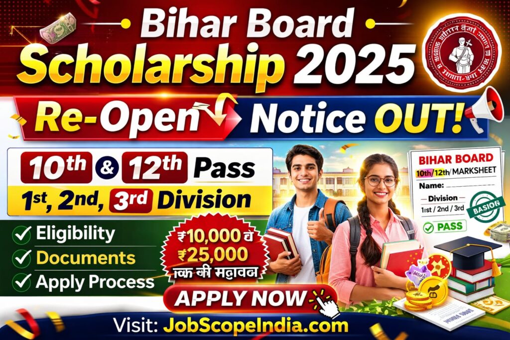 Bihar Board 10th 12th Scholarship 2025 का पोर्टल एक बार फिर से री-ओपन कर दिया गया है, जिससे हजारों छात्र-छात्राओं